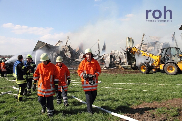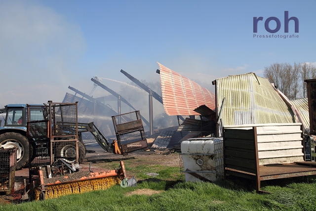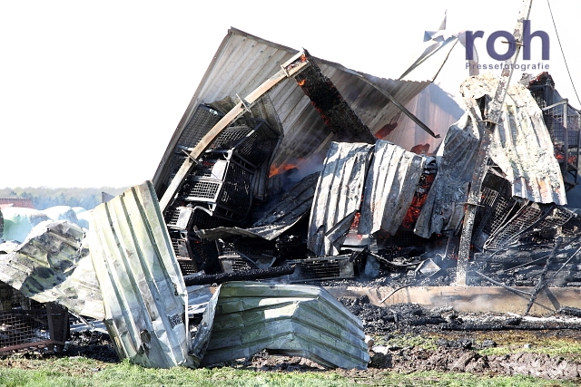 Am Samstag, 04.05.2013, gegen 15.00 Uhr gerät in Damme OT Reselage auf einem Hofgelände eine frei stehende offene Lagerremise für Holz, Stroh und Ackergeräte aus bislang ungeklärter Ursache in Brand. Die Lagerremise war mit einer 22 KW Photovoltaikanlage ausgerüstet. Das Gebäude brannte vollständig aus und stürzte bei den Löscharbeiten zusammen. Der Sachschaden wird auf ca. 350.000 bis 400.000 Euro geschätzt.